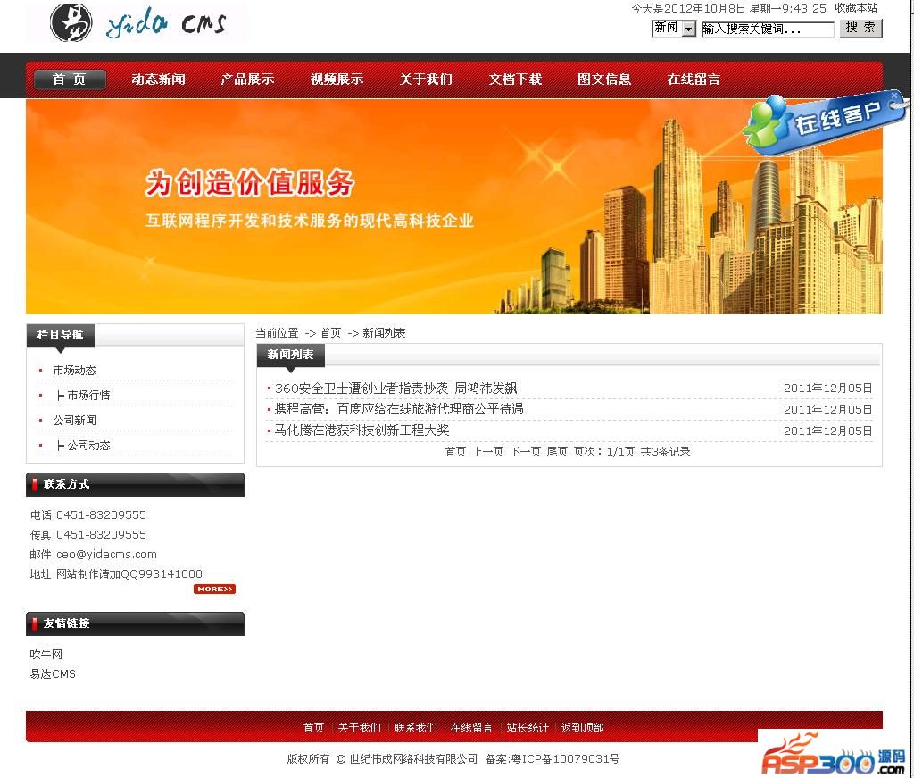 26.内置搜索功能,支持新闻、产品、文档、图文信息搜索,并自动统计关键字被搜索次数。而且在搜索时关键字漂红(像百度一样)