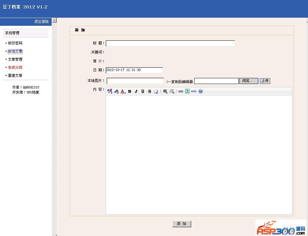 静态网站程序特点是小巧,简洁,适合做展示型网站,几十个网页,最多几百个网页比较合适,虽然可以无限的生成大量的静态网页,但是,这非常消耗时间。后台登录地址:admin/login.asp用户名和密码:admin 下载地址 下载地址已转移到新版网站,请点击左上角-首页,在新版网站搜索此套源码的标题进行下载。