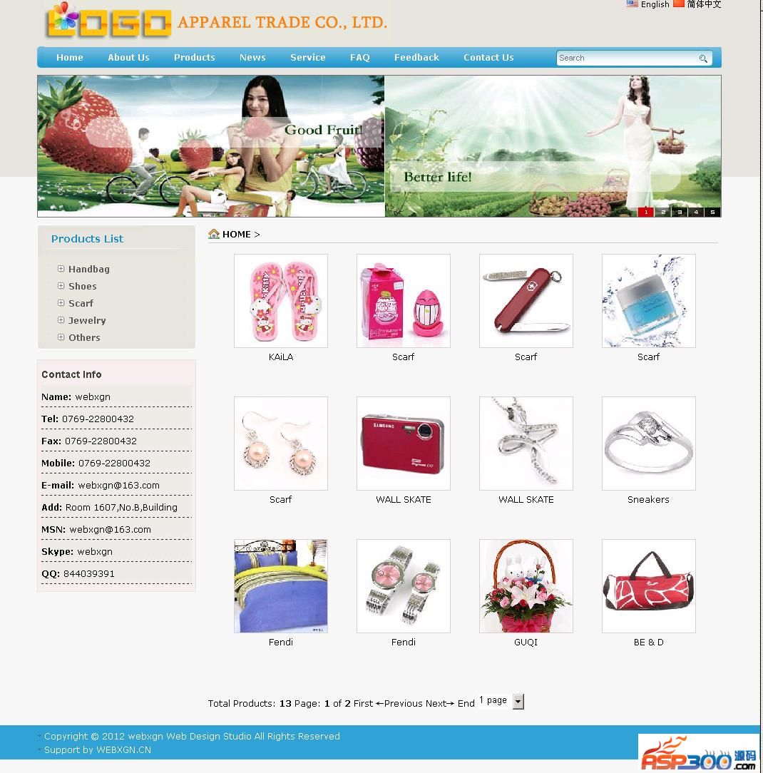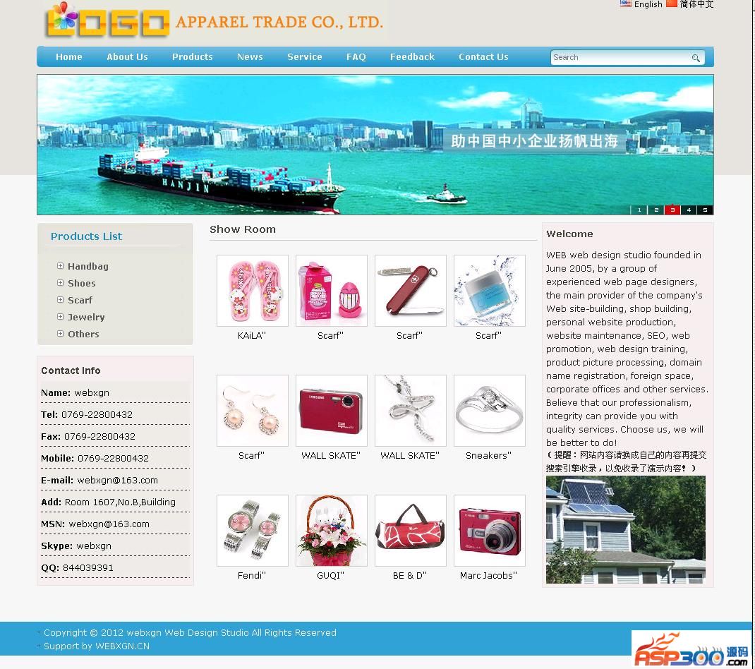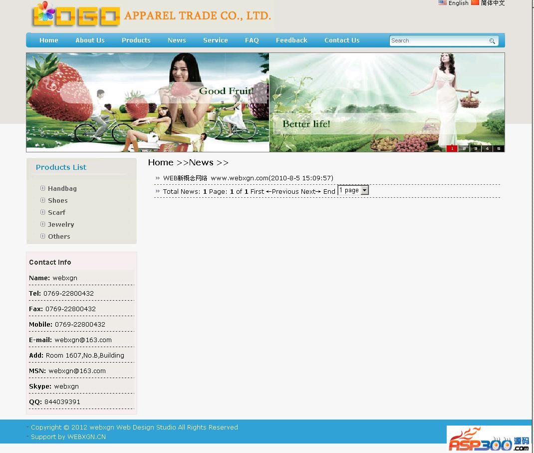 后台地址:admin 账号webxgn 密码webxgn.com