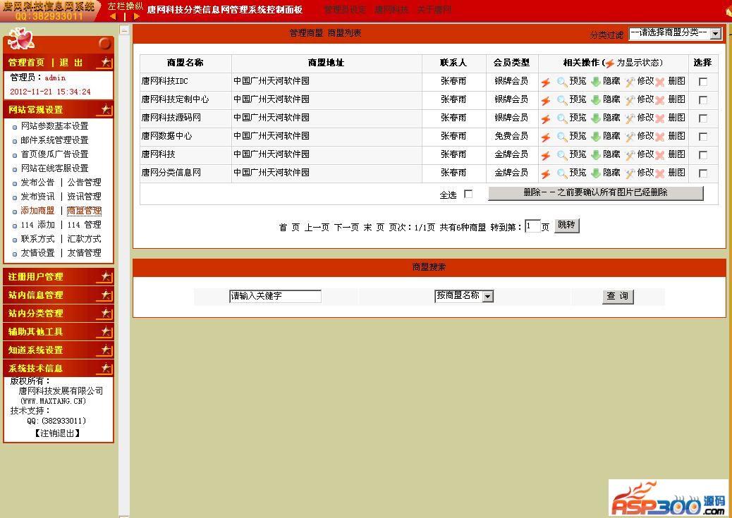 唐网科技分类信息网站管理系统,本分类信网程序基于ASP+Access技术开发的分类信息程序,此程序适用于各种服务器环境:安全、稳定、快速、强大、高效、易用、优秀的网站建设解决方案。采用人性化的Windows操作方式开发,运行速度快,服务器资源占用更少;无论在稳定性、负载能力、安全等方面都有可靠的保证并赢得了广大用户的良好称赞。功能介绍:一个功能强大的分类信息(广告)系统,支持自定义分类信息类别,整个网站风格简单明了,界面美观大方,提高网络推广效果,是国内互联网上不可多得的优秀程序。后台批量管理分类等所有信息。此程序适用于:分类网站网,信息港,分类信息程序,php分类信息程序,免费分类信息程序,asp分类信息程序,分类信息程序下载,分类信息网源程序,海洋分类信息程序,分类信息开源程序,分类信息发布源程序,分类信息网下载,免费分类信息网源码,分类信息源码,分类信息网站源码,ASP分类信息网源码,北京分类信息网,中国分类信息网,上海分类信息网,武汉分类信息网,郑州分类信息网,苏州分类信息网,海洋分类信息网,成都分类信息网,内蒙古分类信息网,济南分类信息网等.