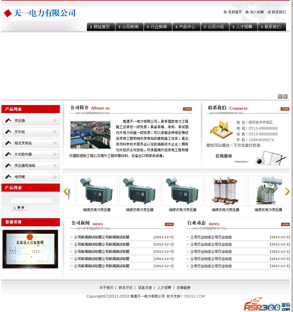 ZBLOG企业网站模板 - 电力公司完整源码(通用)1、源码包括ZBLOG1.8最新版本,因为需要修改掉内核程序,直接放出源码+模板比较方便用户使用2、后台直接添加新闻和行业动态内容,以及产品的分类可以自行修改3、公司简介,联系方式等信息在所在模板的INCLUDE文件夹中修改4、头部的BANNER图片切换效果,需要在模板文件中的FLASH/文件夹中修改bcastr.xml对应的文件5、已经包括所需要的插件,对于产品图片,直接上传图片会自动获取6、后台的登陆用户yd631 密码yd631.com,我们可以登陆后修改7、上传主机之前修改根目录中的c_custom.asp文件中Const ZC_BLOG_HOST网址参数,这样才可以登陆后台