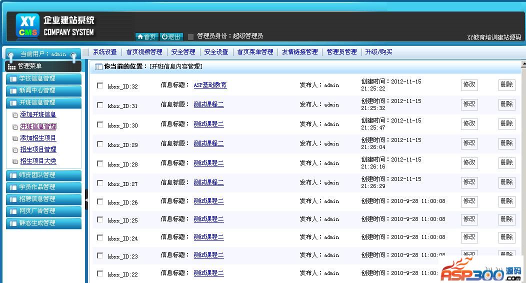 开班信息管理:发布一些最新开班信息,可以进行修改、删除操作
