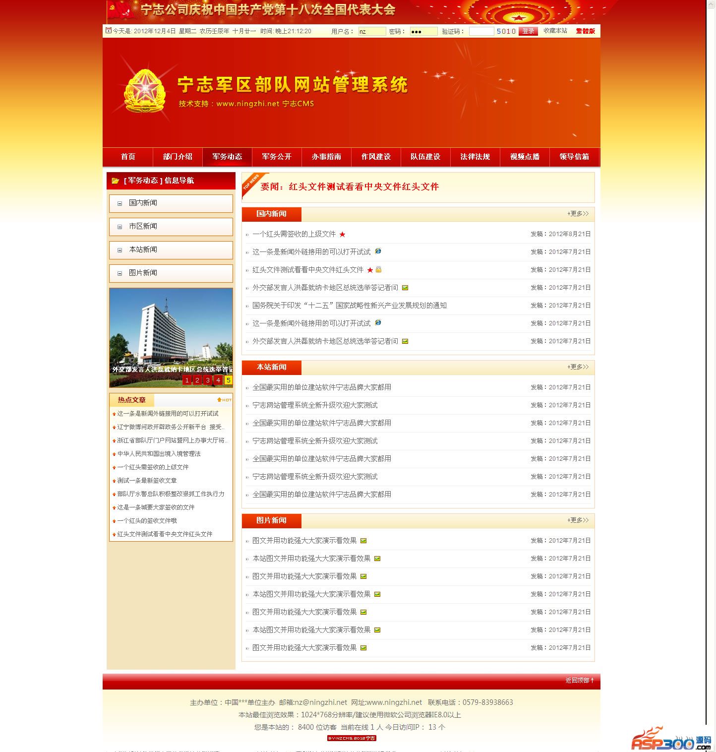 一套专为军区部队建站首选的信息网站管理系统,大红色风格宽频页面十分大方。