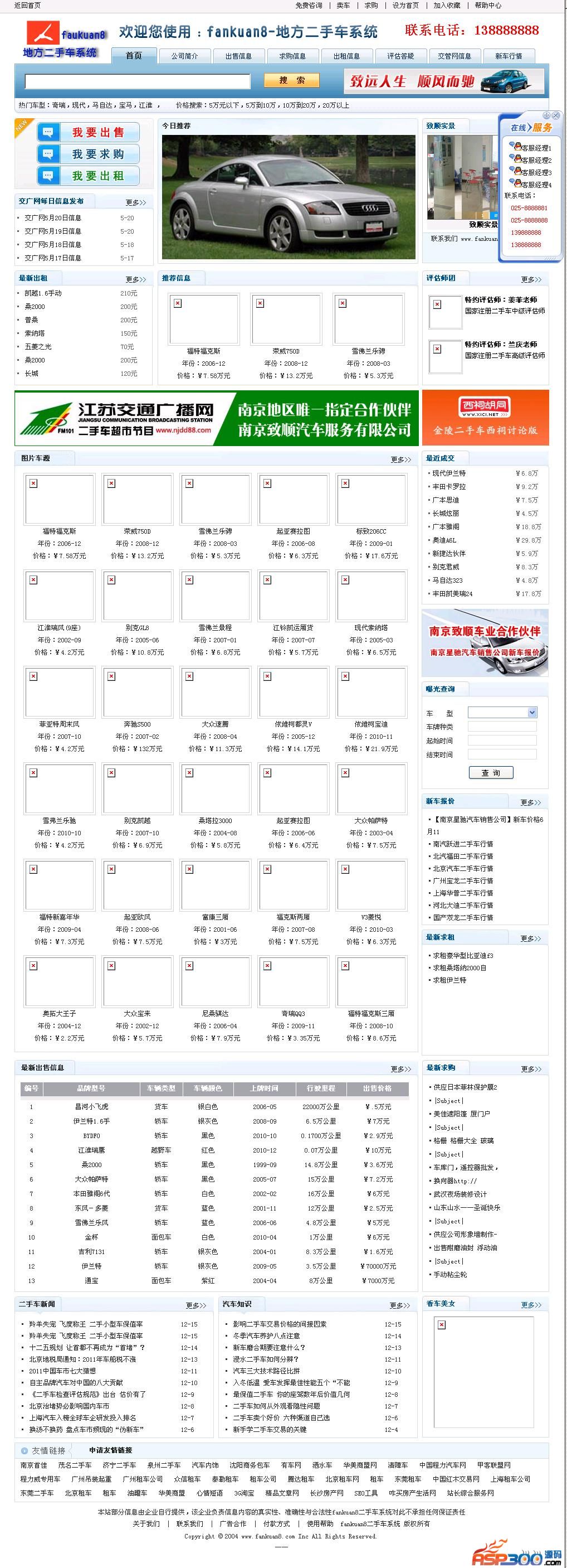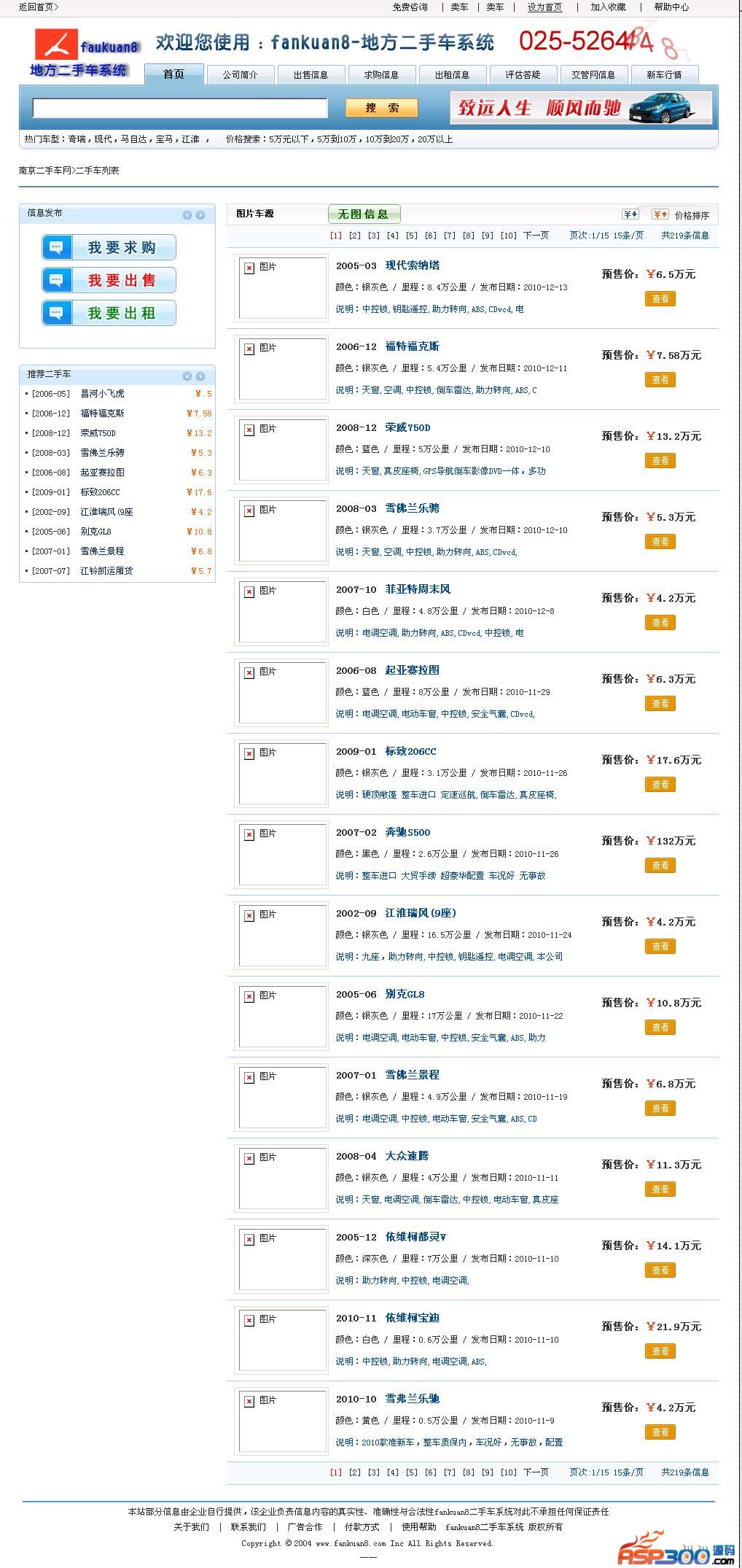 程序介绍:该二手车源码采用ASP+ACCESS开发,功能清晰,程序简单适合二次开发,程序支持游客发布信息,网站栏目设有二手车出售、求购、出租、评估答疑、交管信息、新车行情等,适用于本地二手车及汽车服务公司建站使用。