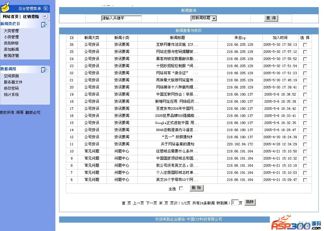 商务科技网络公司网站源码,可添加新闻类别,管理新闻等。 后台登录:/adminccp/login.asp 用户名:admin 密码:123456 下载地址 下载地址已转移到新版网站,请点击左上角-首页,在新版网站搜索此套源码的标题进行下载。