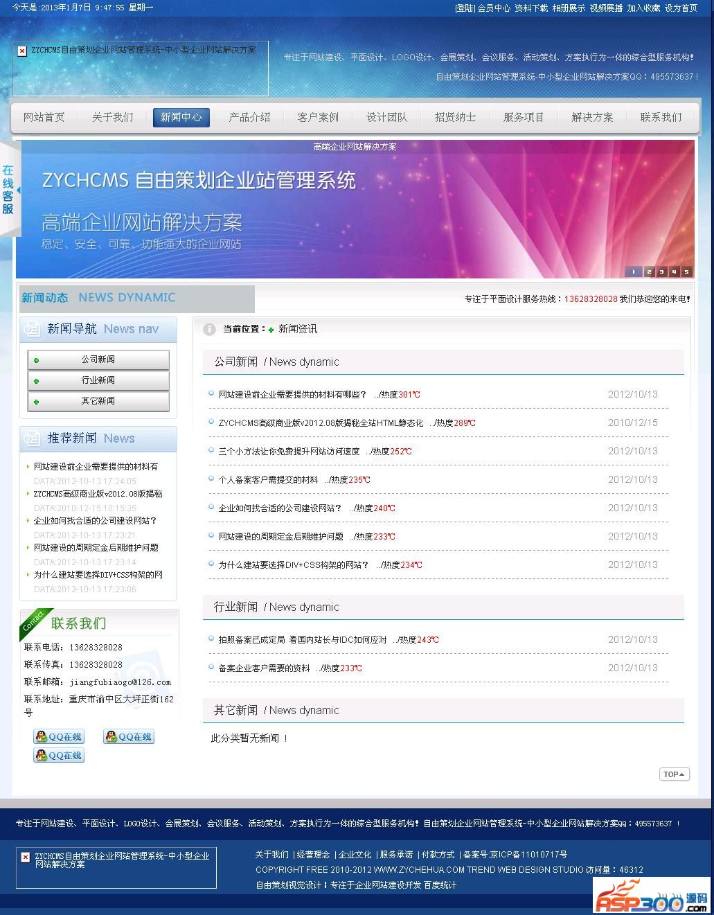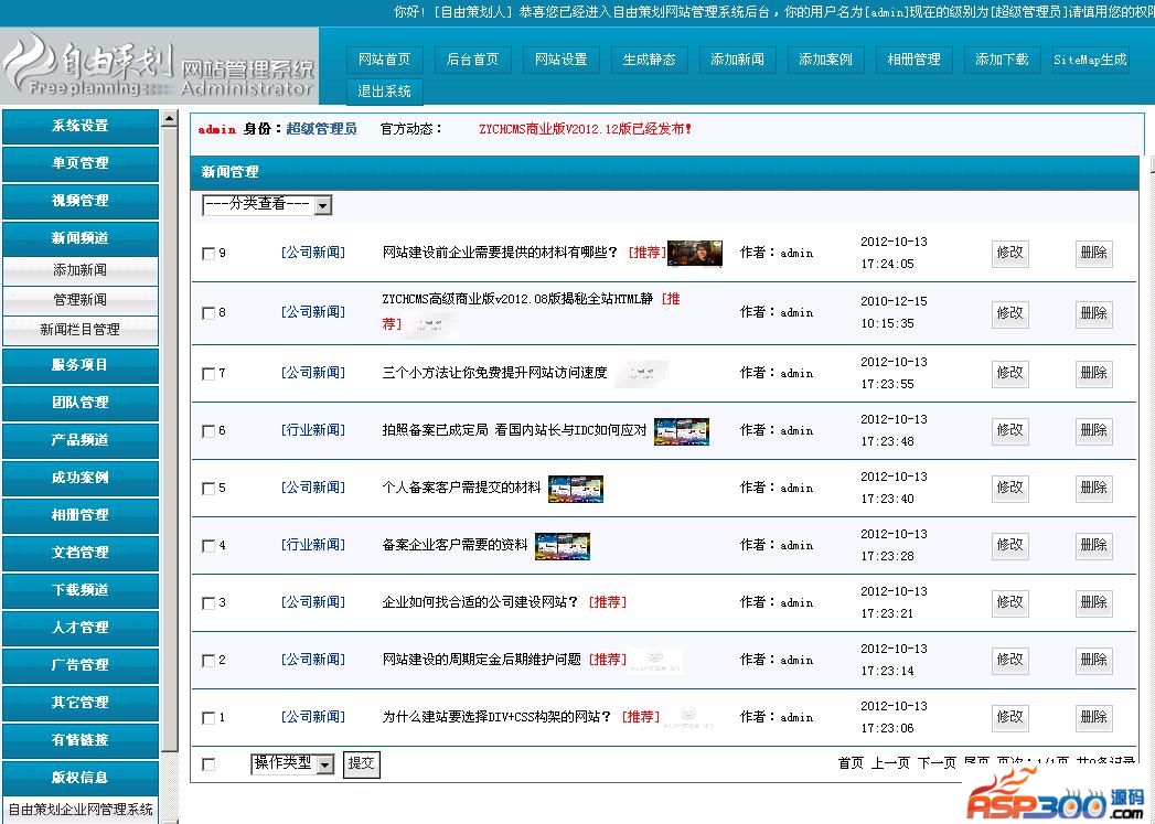 本程序为智能ASP网站管理程序,是基于自由策划企业网站管理系统V2012.12版之后的升级版,不管是在程序的内部结构还是界面风格及CSS上都做了大量优化及性能提升,特别是在ASP生成HTML上做了大量的改变,为用户体验提高一个台阶,本程序适合中小企业自建网站、二次开发使用。本程序具有体积小巧、程序文件结构严谨、界面清爽简单、功能强大、非专业人士使用入门快、中小企业使用投资小等实用特点。
