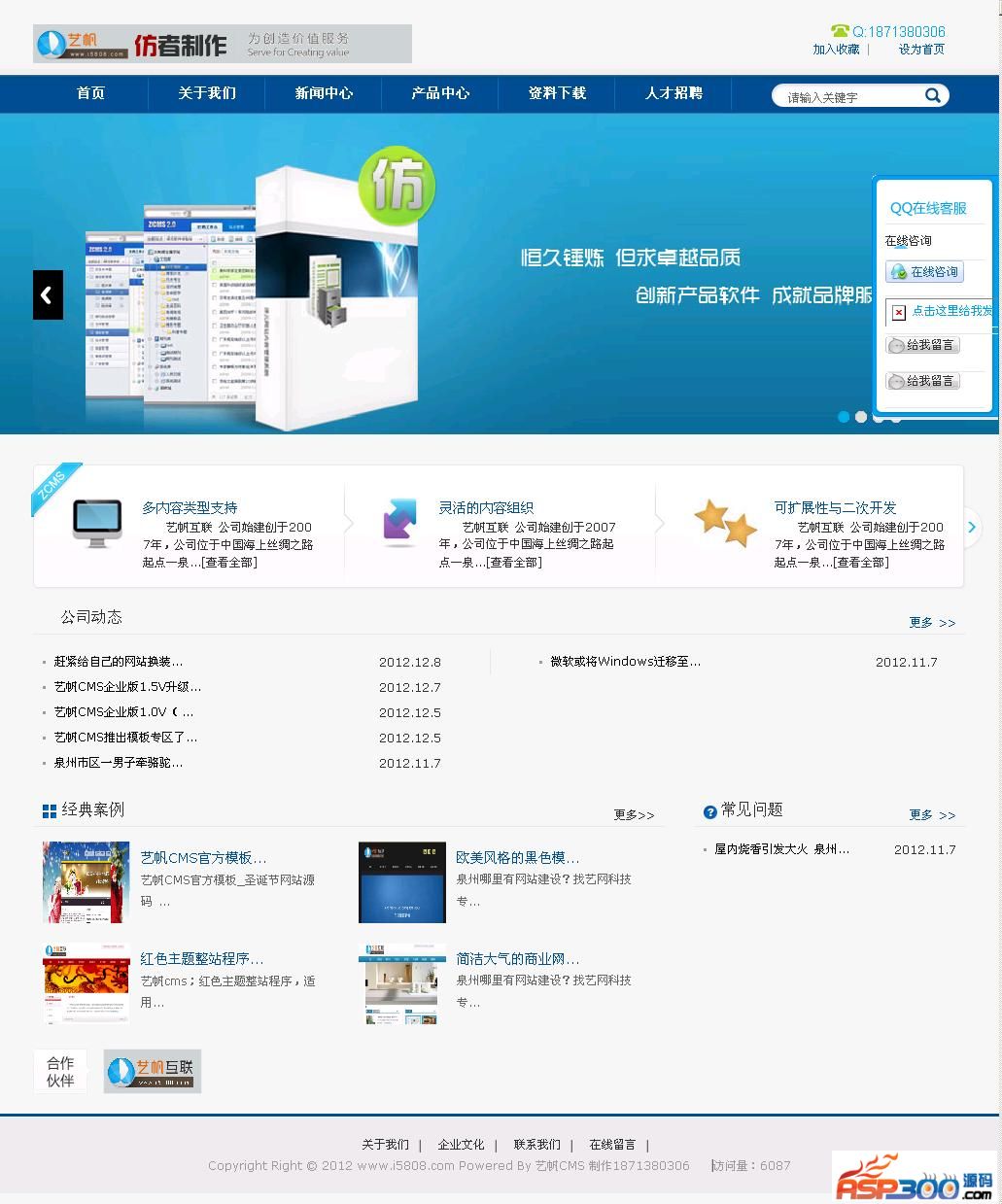 资源名称:艺帆CMS漂亮下拉导航软件企业网站源码