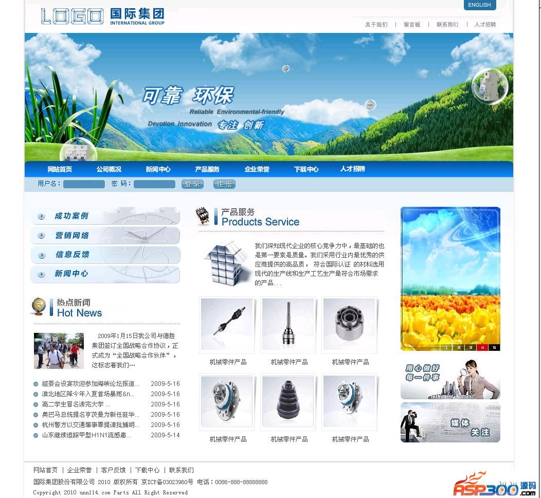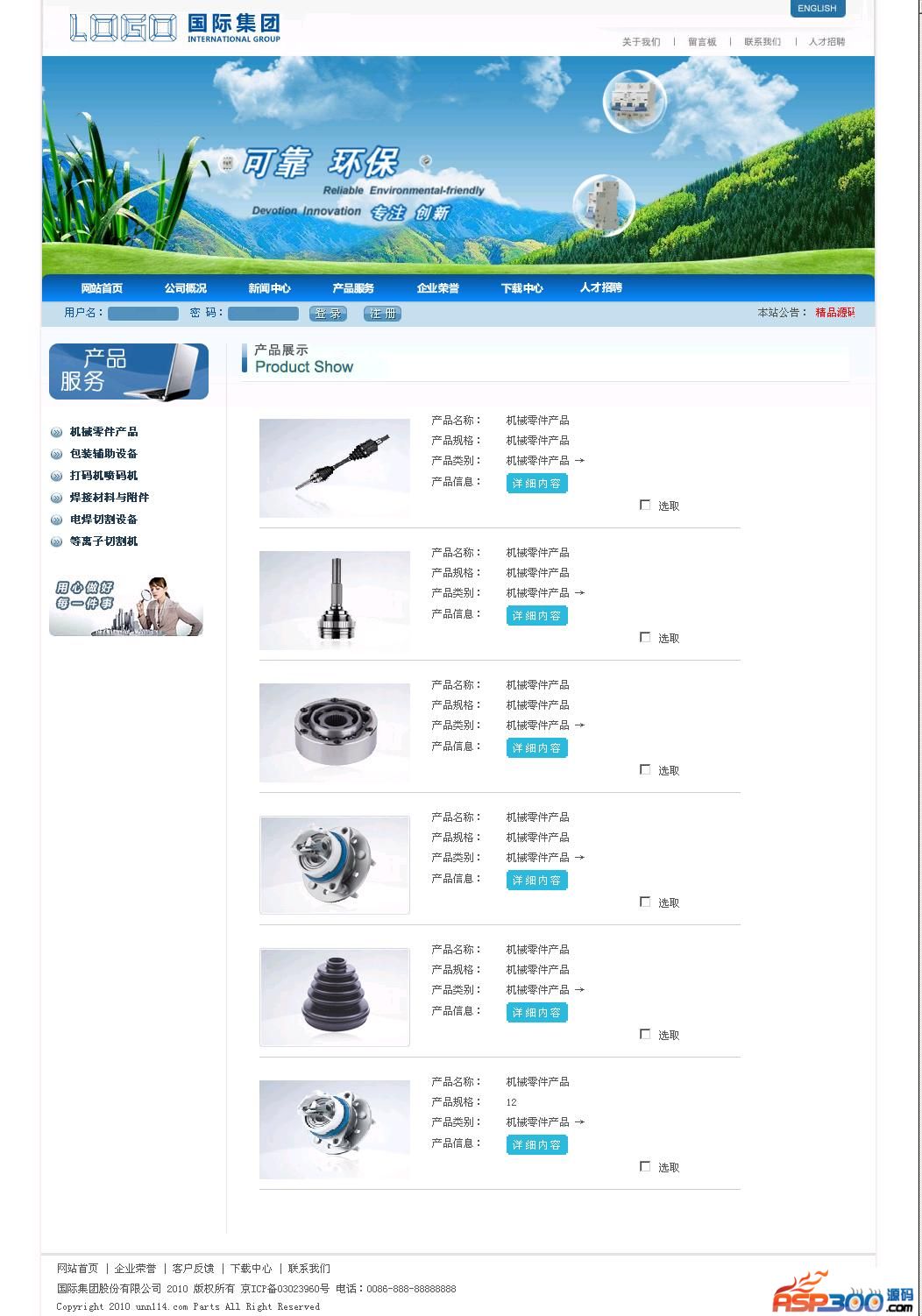 机械设备零部件产品企业网站源码