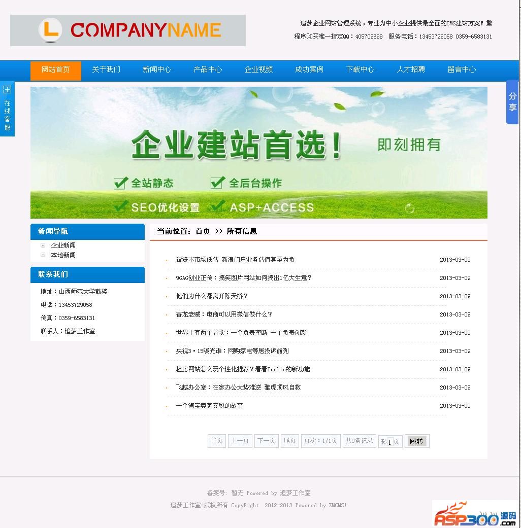 追梦企业网站管理系统(zmcms)是 由追梦工作室基于asp+access/mssql 自主研发而成。我们致力于中小企业网站的搭建。根据现有企业的需求。开发适合企业的模块, 让企业可以轻松搭建适合自己企业的网站,后台功能强大,管理便捷。代码简单易懂,适合二次开发。 我们认为“简单就是美”,因此一直以来,追梦工作室在开发过程中无处不充分考虑用户的使用习惯,尽最大可能降低用户的使用门槛,让用户关注于内容维护本身,而不需 要投入过多的时间来学习系统的使用技巧,在细节处下大工夫。