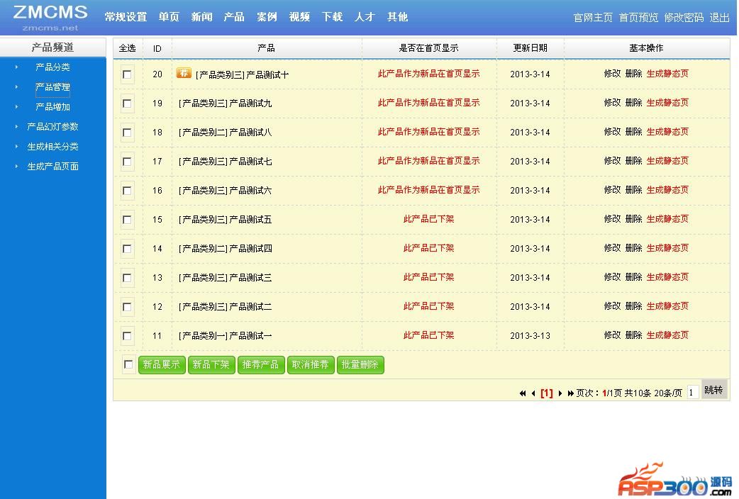 15.企业案列:采用三级频道分类。可支持批量删除。