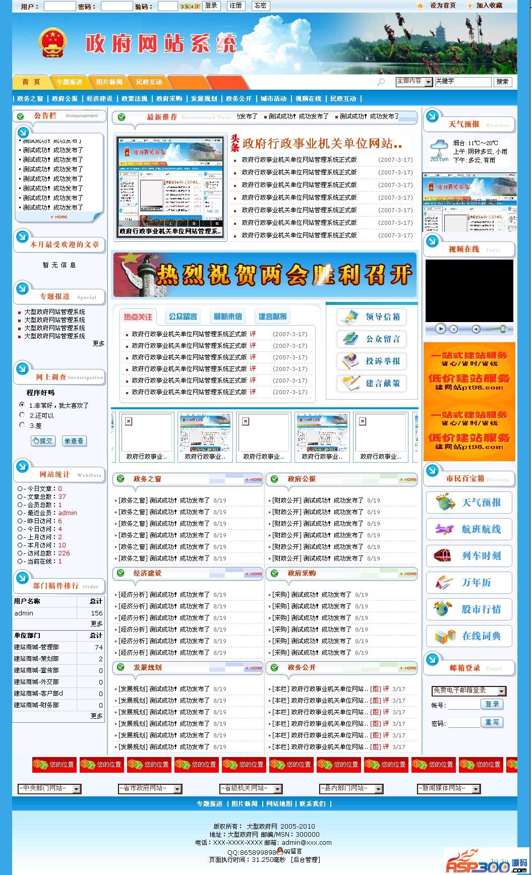 ③言论管理:1、留言管理 2、评论管理 3、 领导信箱 4、投诉举报 5、建言献策。