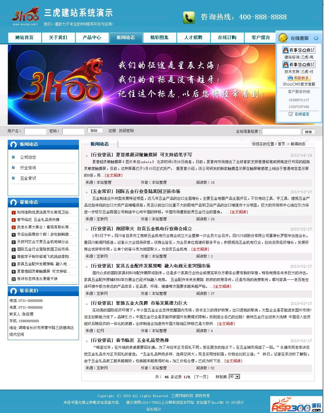 三虎(3hooCMS)建站系统是三虎网络科技为符合中国中小企业国情而定制开发的一个适用于企业建站的系统,程序借鉴了许多成功的企业建站产品的功能与数据模型,从V1到V3 SP3历时3年多开发,基本上能满足任意大多数企业的建站需求,对某些特定行业也进行了改进。系统采用MVC分层设计理念,无需懂动态脚本语言,熟悉HTML即可设计出整站。
