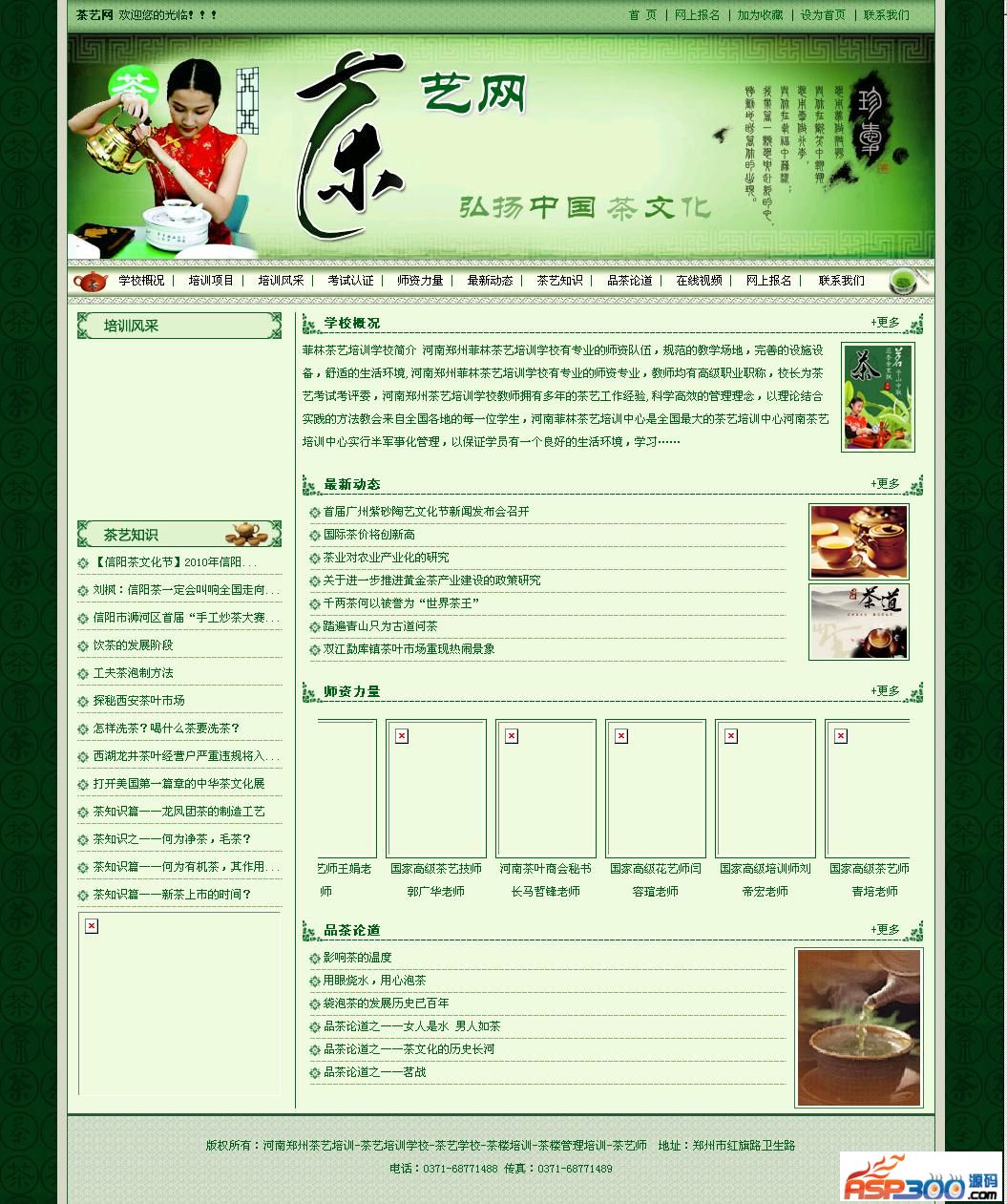 绿色大气某茶艺培训学校网站源码。后台地址:admin 用户名和密码:aspku