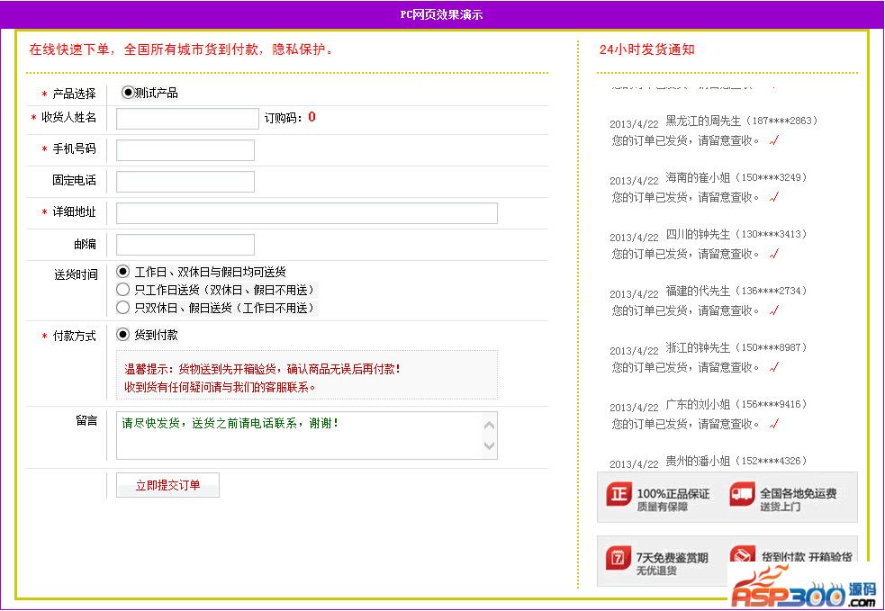 2、邮箱+手机短信提醒,即使您在外,也能随时掌握订单信息,不会漏掉任何一个订单;