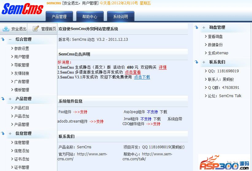 SemCms是一套开源外贸企业网站管理系统,主要用于外贸企业,兼容IE、Firefox、Chrome、Safari、Opera等主流浏览器。