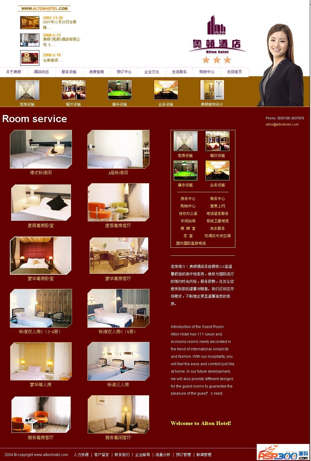 三星级商务度假酒店网站源码