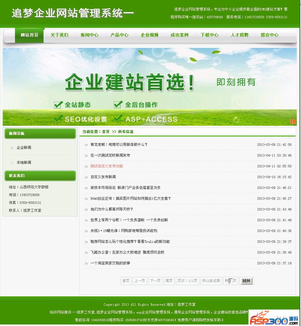 8.新闻频道:采用三级频道分类。可设置标题颜色,外链地址,完美整合kindeditor编辑器。后台可批量删除,置顶,推荐,幻灯新闻。前台可获取获取新闻中的图片以幻灯的样式显示。默认获取编辑器中的第一张图片。同时支持 删除新闻的时候同时删除上传的图片。以节省您的空间,为您节省一些空间费用。大家都知道如果文章长的话,影响网页的美观,追梦工作室根据需求支持手动分页和自动分页。分页样式9种样式,可以随意改变。手动分页,采用我们的标签,在需要分页处插入我们的标签,即可实现分页效果。