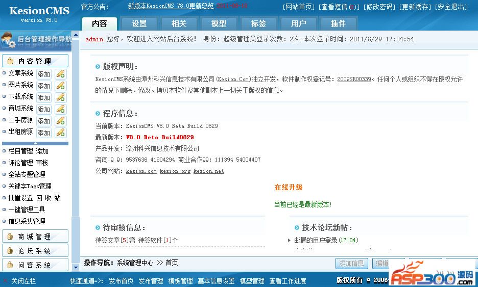 KesionCMS是漳州科兴信息技术有限公司开发的一套万能建站产品,是CMS行业最流行的网站建设解决方案之一,V9.5采用ASP+ACCESS/MSSQL架构,系统具有极强的可扩展性,并且一直以来完全开放源代码;这套系统自2006年发布的第一个版来以来,以其简单易用、功能强大、拓展性极灵活而倍受广大用户的青睐,至今已累计三十万的用户群。