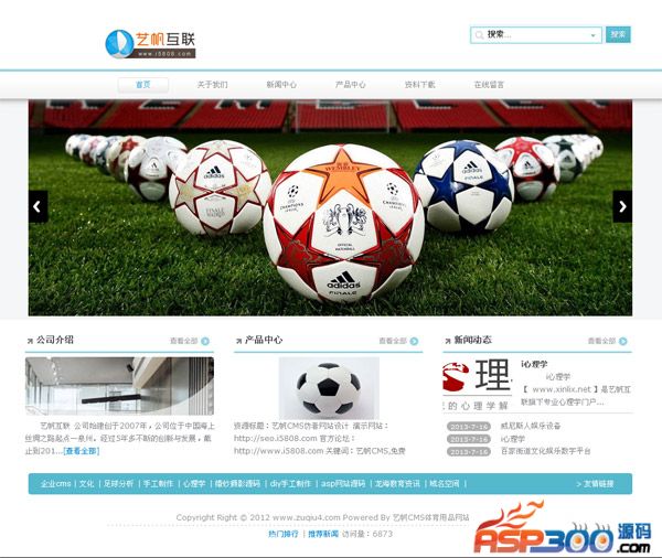 本产品为艺帆体育用品公司网站源码系列:艺帆浅蓝体育用品公司网站源码