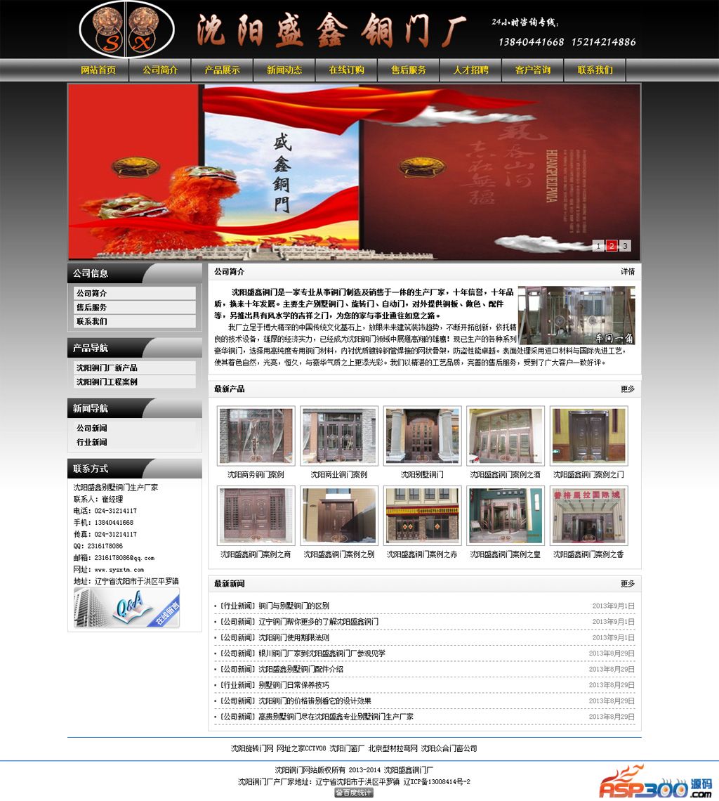 沈阳盛鑫铜门是一家专业从事铜门制造及销售于一体的生产厂家,主要生产别墅铜门、旋转门、自动门,对外提供铜板、做色、配件等,沈阳铜门盛鑫咨询电话:13840441668,现在我厂与沈阳世纪兴网站建设公司共同合作,2013打造漂亮的铜门网站,并通过asp300进行开源,如有问题请到官方站www.sysxtm.com进行咨询留言,如果您用于商业使用,请给本站做个友情链接,谢谢!