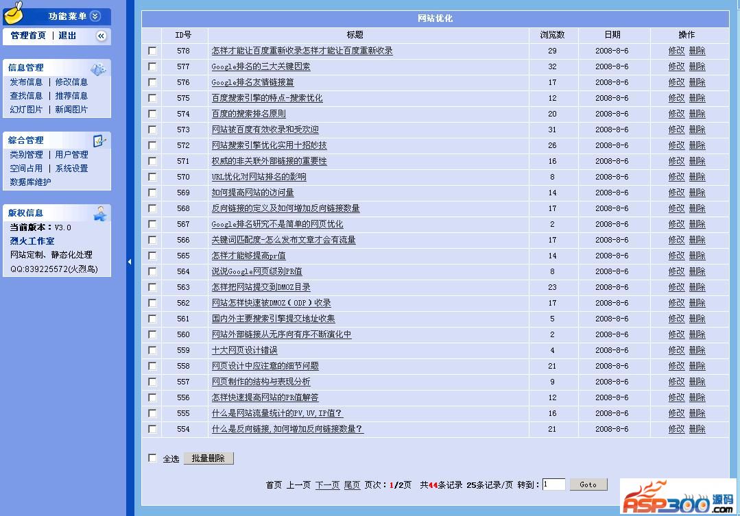 系统管理: 系统设置、留言管理、用户管理、空间占用、企业简介、联系我们
