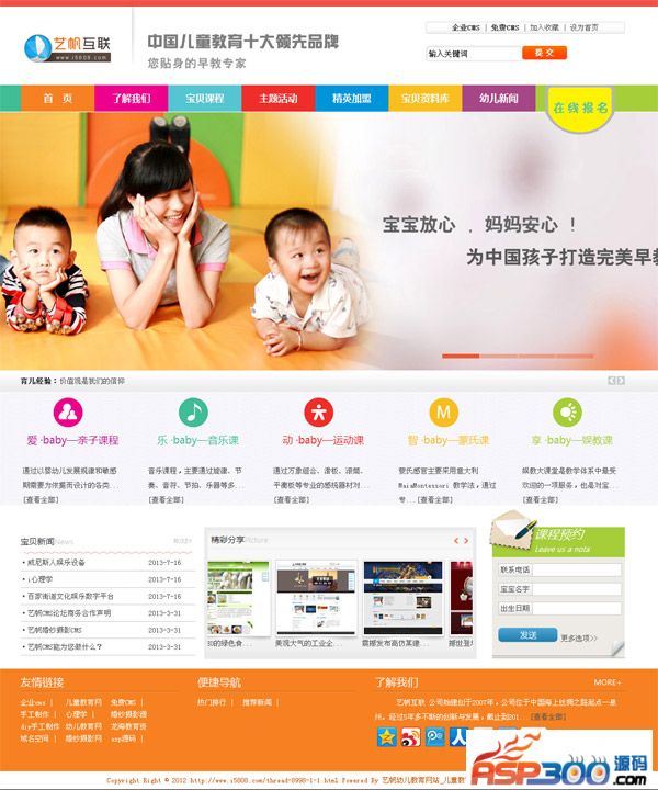 适合行业:幼儿教育网站,儿童教育网,幼儿园网站源码【http://www.i5808.com/thread-8998-1-1.html】等幼儿教育机构网站源码。