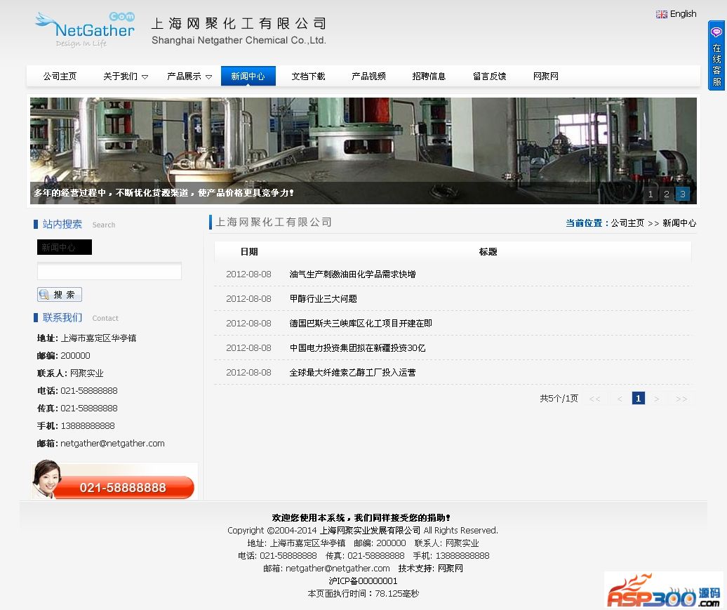 4.网站支持无限的语言种类、无限菜单栏目及无限栏目分类。 >NetGather企业免费建站系统前台首页界面图: