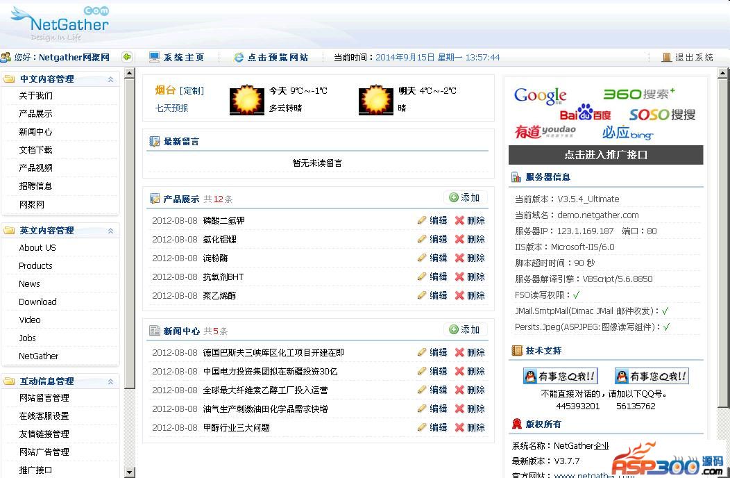 >NetGather企业免费建站系统本次的改版,重新过滤了所有的代码。