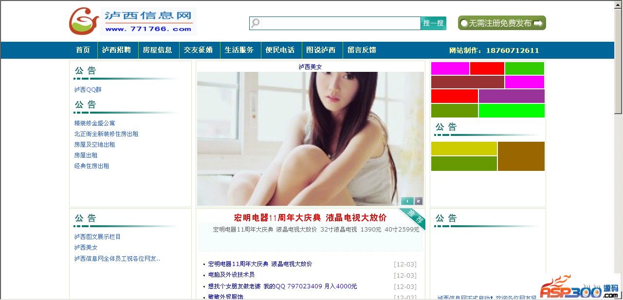 asp地方门户系统,程序采用ASP+ACCESS 全站伪静态 程序精简 适合买不起VPS 或者服务器的站长