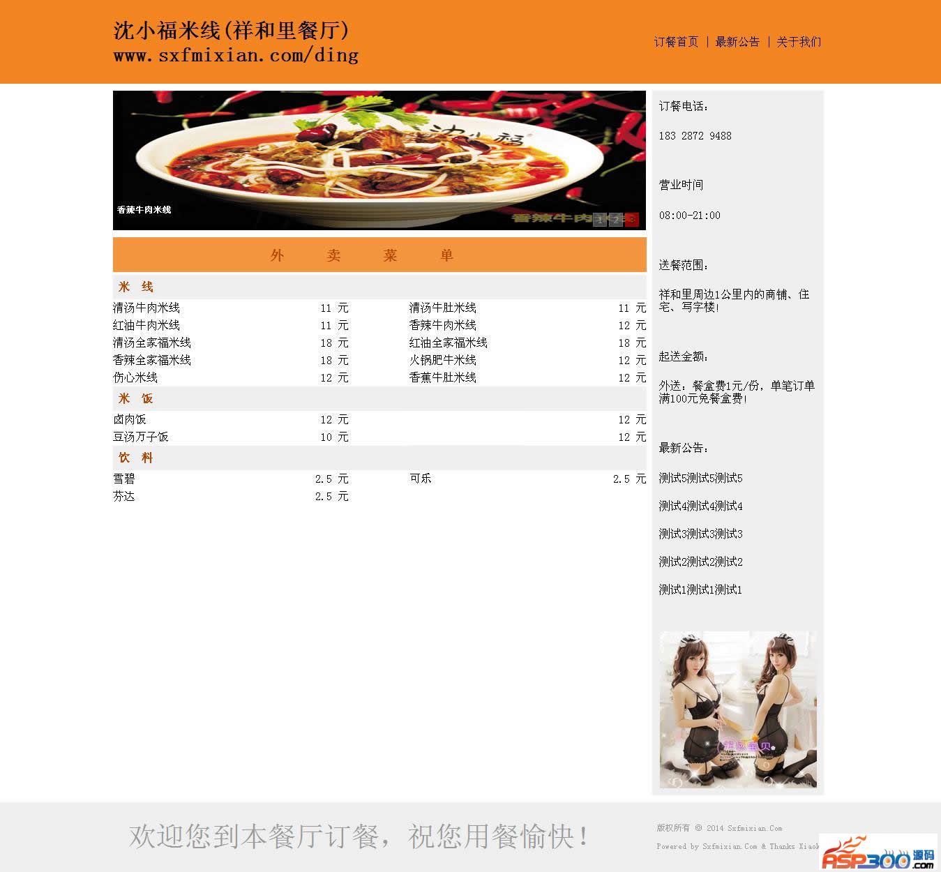 这是一款用asp+access进行开发的外卖菜单展示系统,相比php版本的此类系统网站,降低了对主机及空间的要求!目前还没有计划做在线订餐的功能,日后可能会更新出这方面的功能!空闲时间做的,看需要的人多不? 有人要就继续完善!