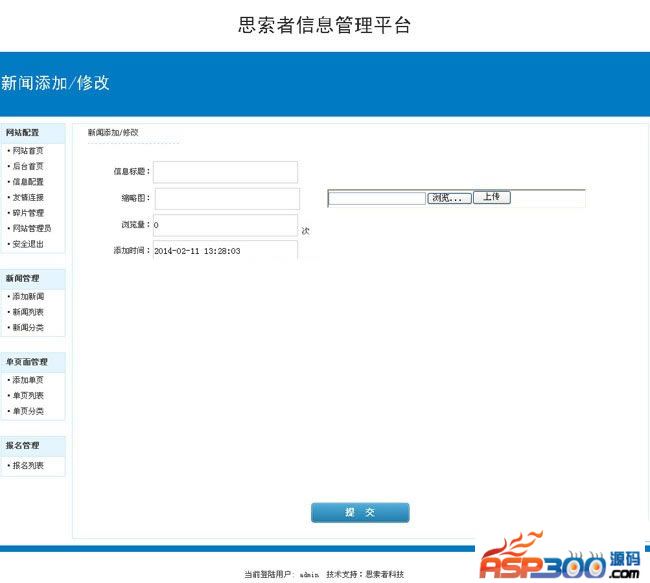 1.网站配置/新闻管理为常规内容,流程简单易懂,新闻需要先添加分类