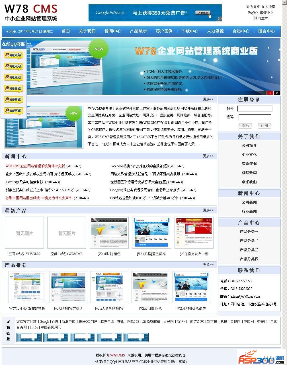 W78CMS企业网站管理系统 v140215 更新内容:在线客服无法发起对话的问题