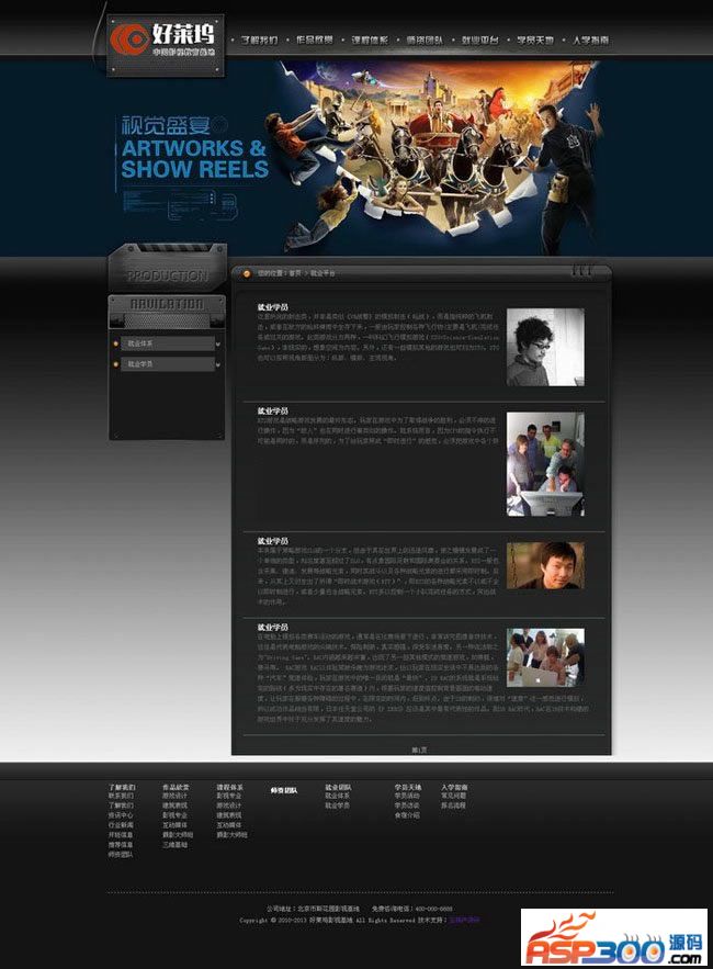 游戏设计影视制作培训学校网站网站功能: