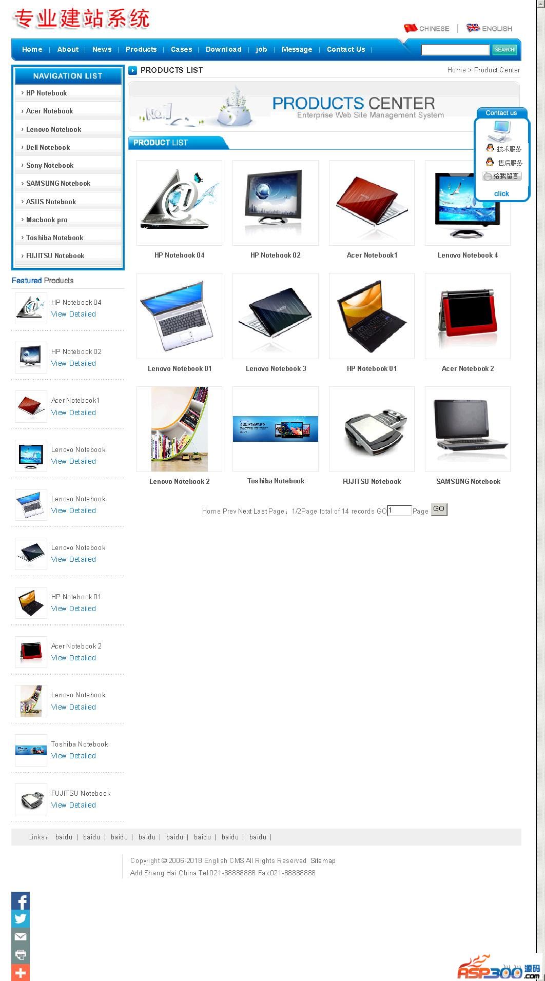 网展中英外贸网站蓝色风格V4.0 更新日志:可在后台设置分享代码,如百度分享和AddThis等。