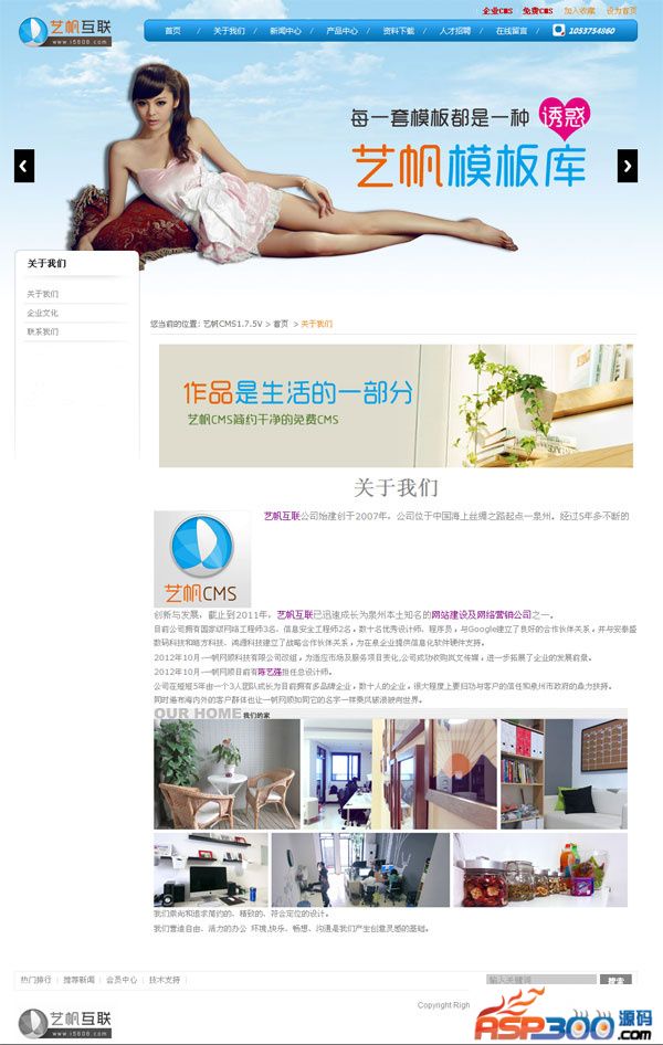 艺帆CMS是由艺帆互联开发,用于服务广大互联网工作者.简单易用,高扩展性是艺帆CMS的特征,艺帆的主旨是打造最适合大众的免费cms,企业cms,免费网站模板,免费的网站制作软件