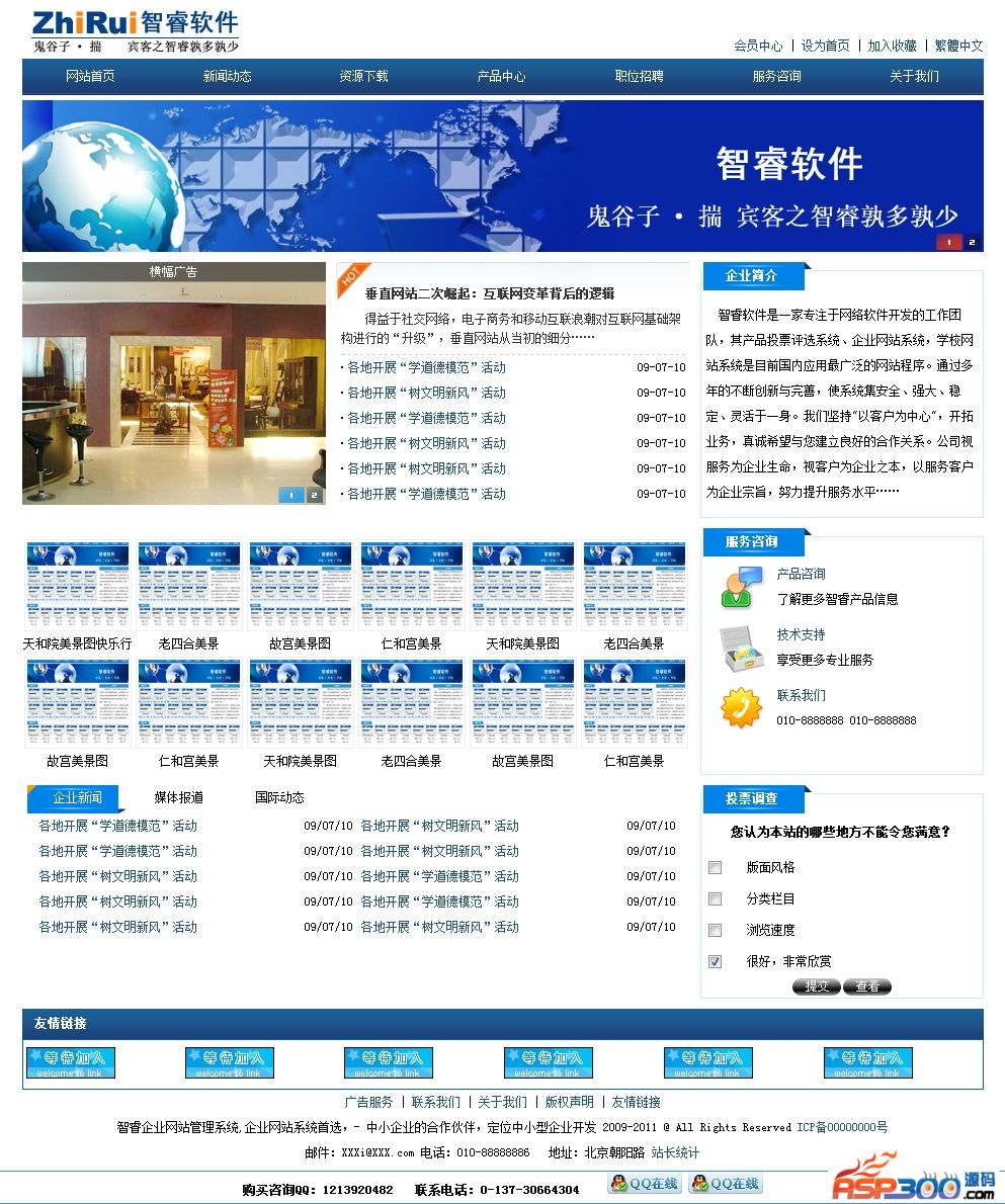 智睿企业网站管理系统具有强大的系统功能,支持中繁任意切换,拥有文章/新闻、图片/产品、资源下载、人才招聘、订单系统、问答/留言、友情链接、广告系统、自定义模型、投票调查等众多丰富的功能模型。