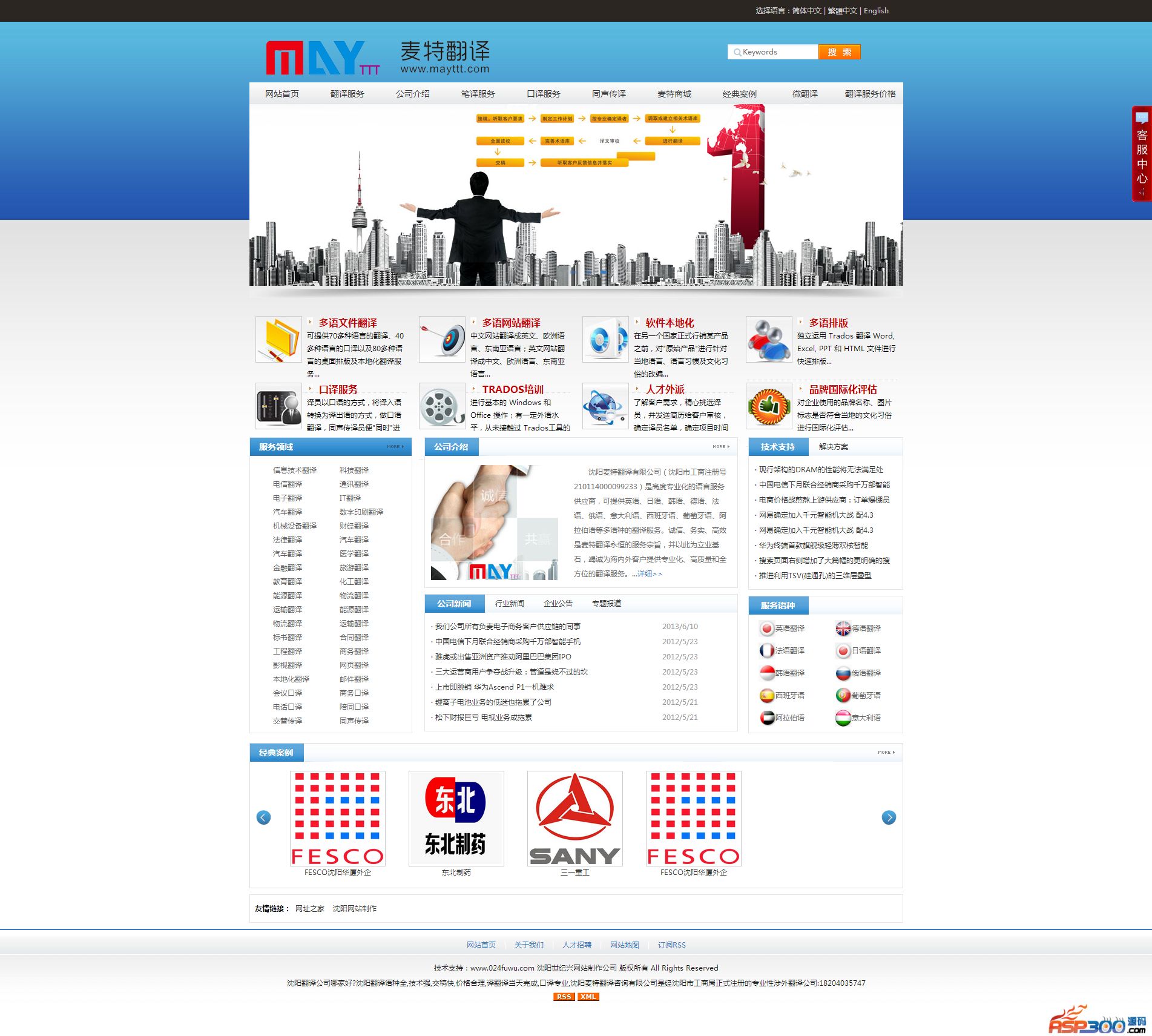 翻译公司全功能版网站源码由沈阳世纪兴网络公司独家提供,由于该客户欠我公司网站制作费余款,网站排名非常好,客户放弃访网站改行做净水器了,没有履行合同,现在分享给需要的站长,网站前后台绝对好用,全站生成静态页,访问速度快,优化效果好,如果您用于商业行为,请给我们做个友情链接,用户名为:admin,密码为:www.024fuwu.com,感谢您的支持!