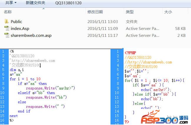 4、sharembweb.com.asp 为要转换的asp文件 代码就写在这里。a