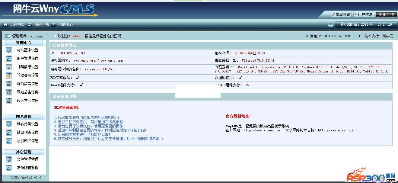 WnyCms米表程序ASP版V2.0,采用ASP开发,后台自由添加、删减、分类对域名进行操作,可快速让域名投资爱好者建立一个独立的专业米表。