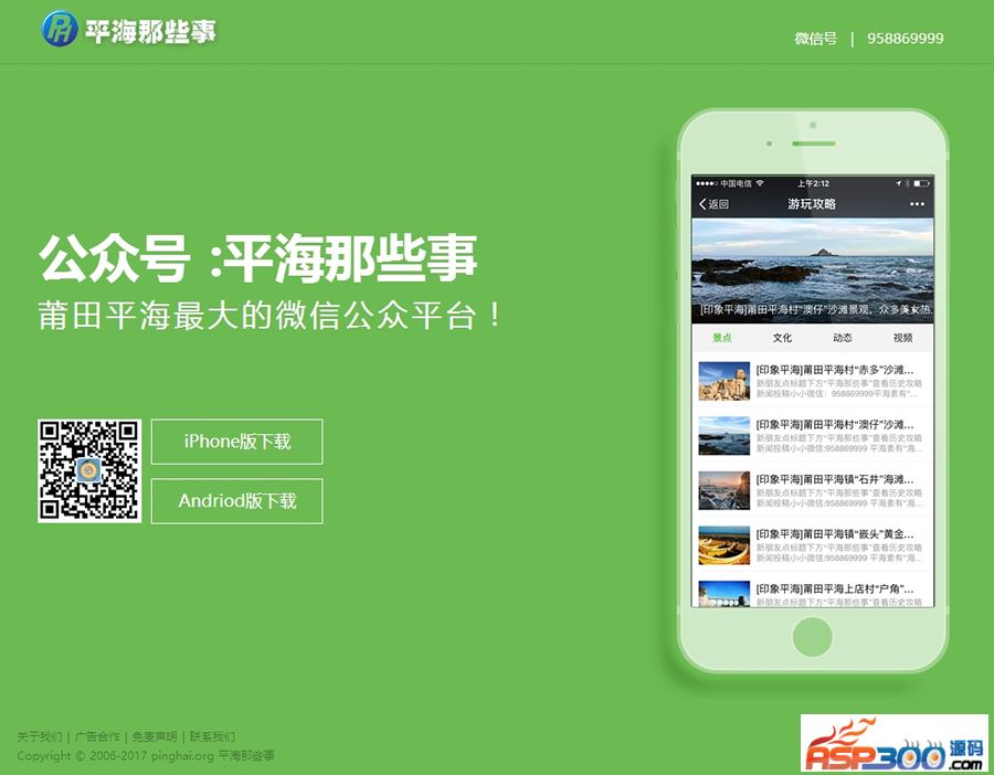 微信公众号主页展示系统html版 官方网站:http://www.pinghai.org 大家可以扫苗网站二维码,获取更多精彩源码系统 下载地址 下载地址已转移到新版网站,请点击左上角-首页,在新版网站搜索此套源码的标题进行下载。