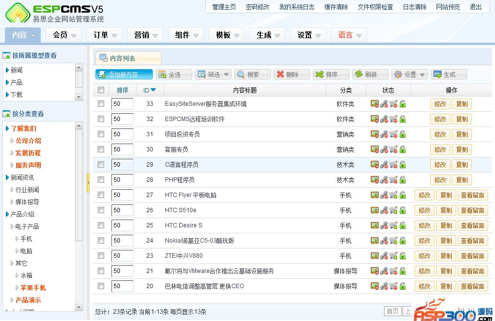 易思ESPCMS企业网站管理系统基于LAMP开发构建的企业网站管理系统,它具有操作简单、功能强大、稳定性好、扩展性及安全性强、二次开发及后期维护方便,可以帮您迅速、轻松地构建起一个强大专业的企业网站。内置3GWAP手机网站、企业群站、模型字段自定义、内容分页、简繁内码转换、SEO搜索优化、静态页生成(支持动态及伪静态)、评论留言、订购、询价、会员、邮件订阅、邮件群发、广告、统计、自助表单等常见企业网站基本功能,通过灵活的插件机制还能扩展更多应用。易思ESPCMS后台分为以下几个模块:一、内容模块:支持任意内容发布及发布方式自定,满足不同企业、不同行业、不同种类的信息发布需要,具有高度的适应性。内容模块的主要功能包括:无限分类、单页分类、跳转链接;专题及品牌管理;页面显示推荐位(将信息推荐到不同的网页显示区域);内容模型、字段自定义、发布规则自定义(通过模型自定义,可以满足不同行业的需求);内容评价及留言管理;内容发布可以发布多图展示、相关内容关联、阅读权限、点击数自定义、发布时间自定义、生成文件名自定义、内容分页、内容跳转链接等....二、会员模块:支持会员等级自定义、会员注册及填写字段自定义,通过不同等级不同会员,可以满足不同行业的信息收集需求。三、订单模块:支持订单组合、产品选择、订单在线支付(在线支持方式包括:支付宝、财付通、Moneybookers、PayPal)、订单单据打印、支持条码管理、发货方式自定义、财务单据管理、打折等常见订单功能;四、营销模块:支持SEO全站优化、关键字自定义、全站关键字分组,关键字与内容分类或模型关联。邮件订阅管理、支持多订阅分组,满足不同种类的订阅需求,支持邮件批量导入导出。邮件群发支持、可以定期发布公司广告、新产品推荐等操作;五、组件模块:支持即时通在线添加,可以添加QQ、MSN、SKYPE、淘宝、阿里巴巴等主流即时通软件。支持广告发布、友情链接、文字广告、动画广告等。留言论坛支持留言版块添加、留言显示方式(支持普通留言模式和标题列表显示模式自定)。自助表单支持字段添加、提交显示方式自定、邮件通知自定。文件管理:支持文件夹名称修改、图片文件在线剪切、编辑、缩方等功能。相册管理:支持图片相册分组;六、模板模块:支持网站主题(模板)切换、模板文件在线管理、邮箱通知提醒模板在线管理、订单打印输出模板在线管理;七、生成模块:支持主页生成、分类生成、专题生成、一键网站生成、谷歌Google地图生成、RSS生成;八、系统管理模块:支持管理员添加、权限组管理(可以自定管理员的权限,不具备的权限则在界面上不会显示相应的功能)、数据库管理(数据库备份、恢复、修复)、语言站群管理(可以设置不同语言或不同网站)、语言包管理(设置不同语言或不同网站显示的相应语言包)、系统设置(各模块之间的功能设置)、操作日志、缓存管理、文件权限夹管理;九、邮件提醒模块:支持会员注册邮件通知、会员密码找回邮件通知、会员激活邮件通知、订单下单成功邮件通知、支付成功邮件通知、订单取消邮件通知、新订单管理员提醒通知、订单确认邮件通知、询价确认通知、询价管理员提醒通知、自助表单自定义管理员邮件知通知、自助表单回复通知、表单提交感谢信通知、新留言自定义管理员邮件知通知、新留言回复通知、内容留言管理员提醒通知。易思ESPCMS v5.2.12.02.16 更新内容: