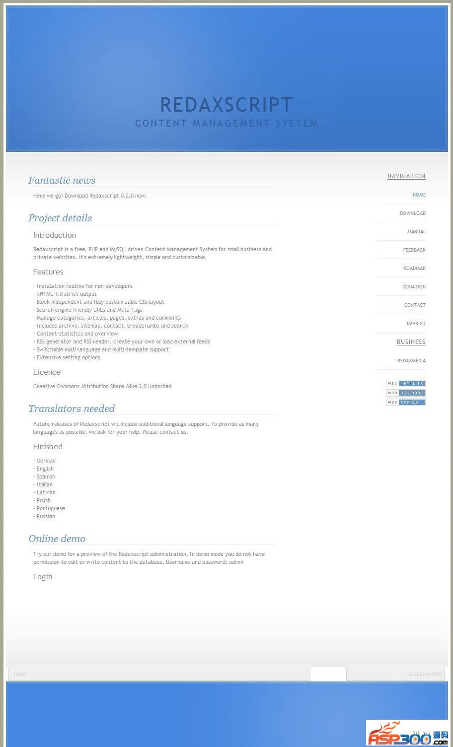 class="content">Redaxscript是一个免费的基于 PHP 和MySQL 的内容管理系统,主要用于小型企业和私人建站使用,它是一个极其轻量级,简单可定制的内容管理系统。