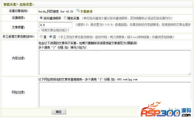 自动标题、段落重排、高级混淆、自动内链、内容过滤、网址过滤、同义词替换、插入seo词语、关键词添加链接等多种方法手段对采集回来的文章加工处理,增强采集文章原创性,利于搜索引擎优化,提高搜索引擎收录、网站权重及关键词排名。