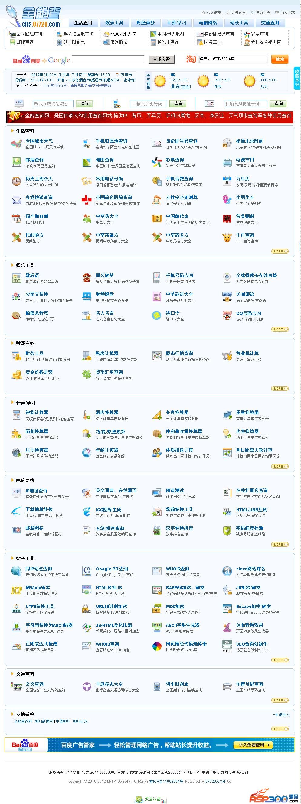 后台地址/07729 账号:07729 密码:07729使用说明:1、本程序采用PHP+ASP架构。需要支持PHP+ASP的空间才能正常运行,本地测试需要PHP+ASP环境,如果单独使用PHP环境测试,天气预报程序会弹文件下载提示,部分asp程序不能正常运行。如果单独使用ASP环境测试,PHP程序则无法运行。空间大小需1G-2G左右,为以后方便升级。2、使用本程序需注意:要生成自己的天气预报首页必须先进入后台填入正确的域名信息。填写好相关信息后要重新生成静态页才能访问。后台地址/07729账号:07729 密码:077293、由于城市天气页比较多,建议在本地生成好了再上传。生成城市天气页的过程中比较耗费CPU资源,所以在不是非常好的空间上运行可能会有中断现象。建议在本地生成。生成ID段最好分为0-100 100-200 200-300...以此类推。生成城市详细天气页的文件夹为weatherhtml,城市介绍文件夹为cityintrohtml。生成天气页面后,程序每天自动采集中国天气网最新天气信息。采集不再占用空间,和原来的空间大小相等,无需管理维护。天气视频以当天新闻联播播出过后为准。4、全站广告位。进入后台广告管理修改,/07729 点击 广告管理-所有广告列表 点击编辑 修改添加即可。其它模板文件也可进入后台修改。广告修改添加完毕记得点击-开始播放!5、SEO伪原创工具可以自定义添加关键字替换,后台路径为/seo/admin账号:admin 密码:admin此工具需要先安装,安装路径为:/seo/install/index.php 然后,输入空间商给你的数据库用户名和密码按照提示安装即可。(数据库必须为MYSQL)