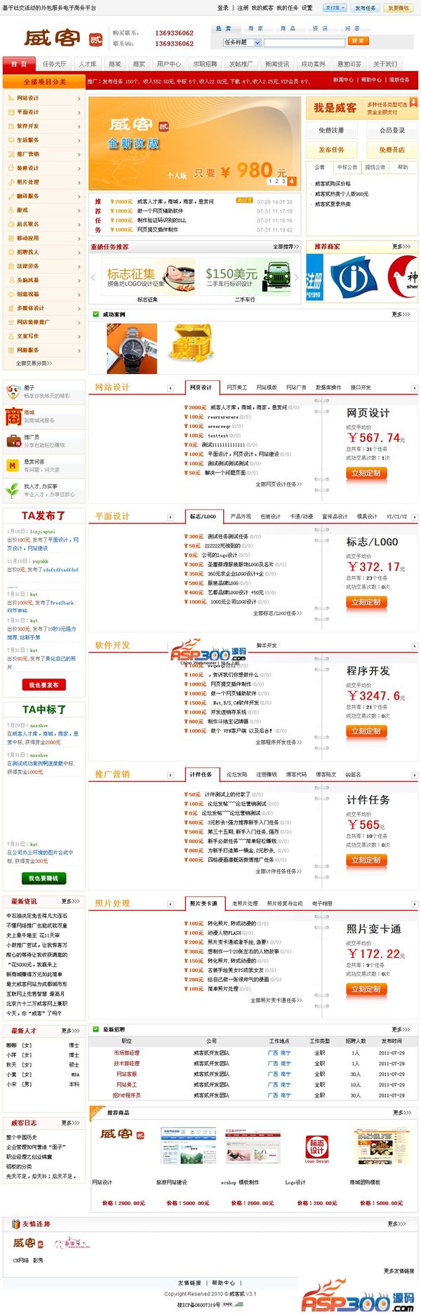 威客贰系统是国内领先的威客网站内容管理系统,基于PHP+Mysql架构开发。整合UCHOME系统,系统内容模块由:威客悬赏,招标任务,人才库,人才,招聘,新闻资讯,在线支付,发贴推广,案例示范等多种功能组成。