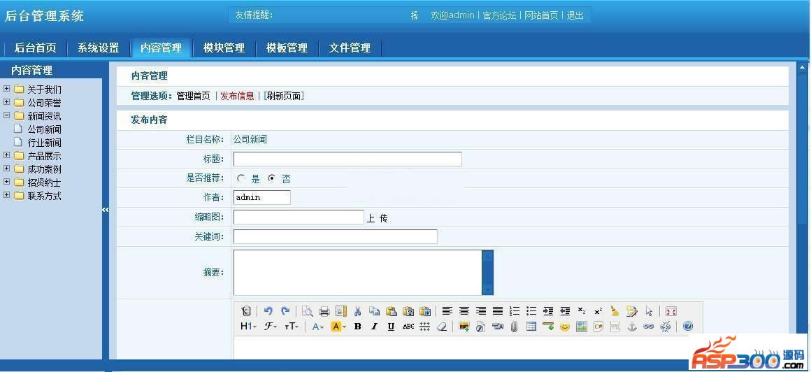 C、内容模块化,二次开发更便捷。自带模块:幻灯片、QQ客服、友情链接、自定义表单(在线留言、简历管理)