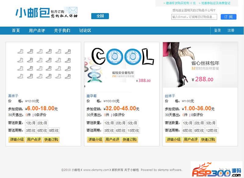 小邮包-包月订购包年服务网,该程序由好买卖商城开发,程序采用PHP+MYSQL架设,程序商业模式为目前最为火爆的包月订制包年服务模式,这种包年订购在国外网站已经热火很多年了,并且已经发展到一定规模,像英国的男士用品网站BlackSocks,一年的袜子购买量更是达到了1000万双。