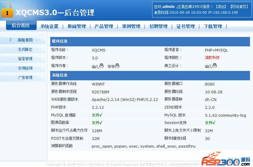 XQCMS企业建站系统 3.1 主要更新:2012-09-01