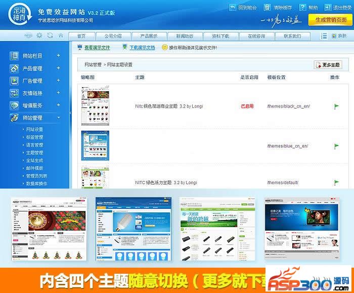 4、模板主题更换极为方便,默认赠送4套;