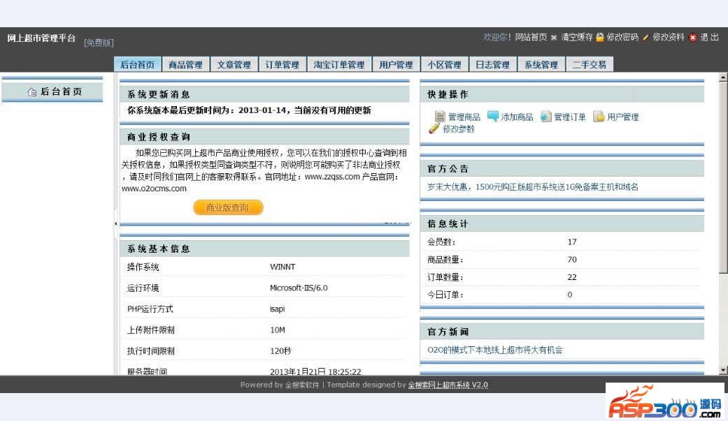 全搜索O2O网上超市系统 O2O网上超市系统是一种新式的电子商务商城系统,本系统专门为同城或者同区域以及同小区电子商务打造,使用快捷方便,购买流程更人性化,适合建设同城购物平台,送货上门服务。通过本平台可以快速的搭建一个专业的同城购物平台,帮你开辟出重要的网购平台。